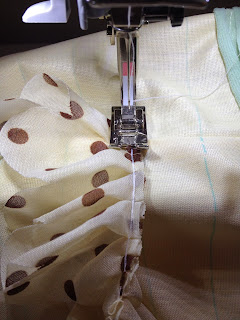 b. I would stuff as much ruffle fabric in while sewing as possible to make it fuller. The first couple rows I did were not full enough so I ended up going back and adding more fabric there.