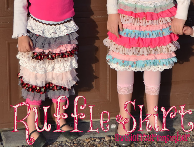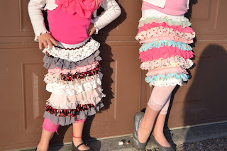 Last weekend I caught up on all my etsy orders (which is a first in such a long time it was a weird feeling) and had promised my 2 older girls that I would make them a skirt. I didn't know exactly what I would make them, but my drawer of remnant ruffle fabric pieces was over flowing and driving me NUTS!