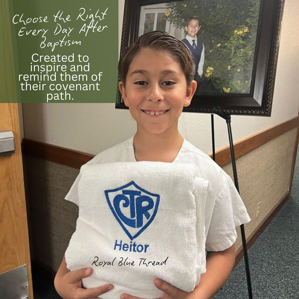 Personalized Baptism Towel — imagine a white or light‑colored towel embroidered with the youth’s name and baptism date; a practical piece that becomes a keepsake.